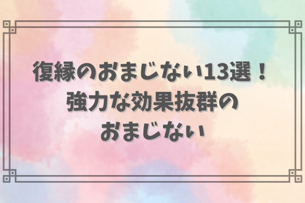大切なことは、信じる心を持ちつつ、おまじないだけに頼らず、自分自身を丁寧に磨き続ける姿勢です。復縁に向かう第一歩を歩み、再び幸せな笑顔を取り戻す支えとなることを願っています。