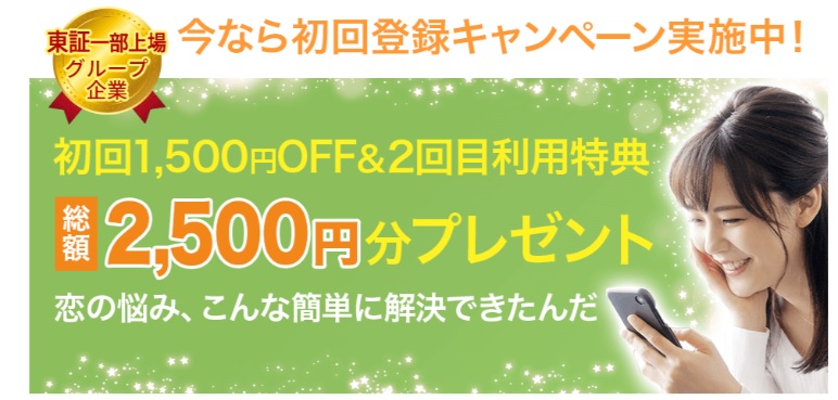 | 特徴 | 復縁・相性・結婚・運勢・不倫など5つの鑑定を無料体験 |