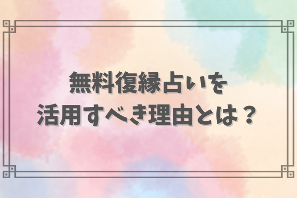 無料の復縁占い、特に初回特典などを利用することは、復縁を目指す上でいくつかのメリットがあります。占いの結果がすべてではありませんが、上手に活用してみましょう。