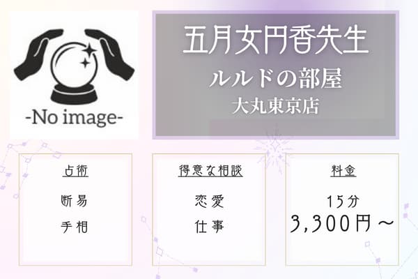 | ルルドの部屋大丸東京店 | 30分 5,500円 | 恋愛、仕事など | 断易、気学、手相など | 東京駅直結 |