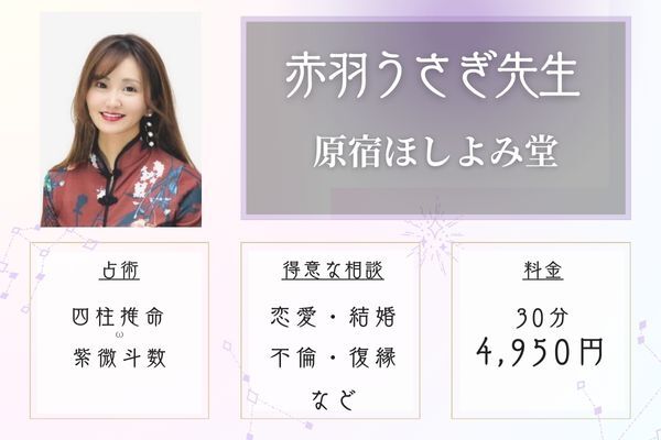 | 得意な相談内容 | 恋愛、相手の気持ち、結婚、仕事、金運など |