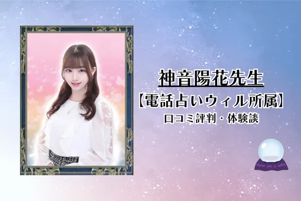 | 神音陽花先生 | 420円/分 | 復縁、不倫、結婚、縁結びなど | 霊感霊視、未来予知、透視、第三之眼など |