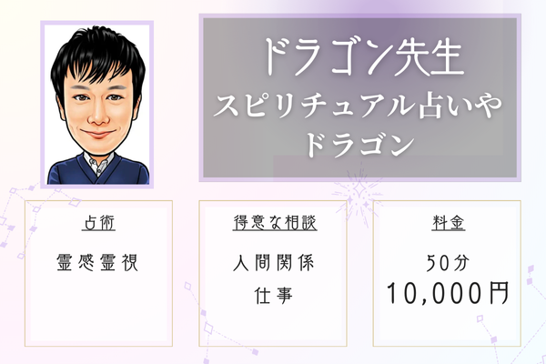 | スピリチュアル占いやドラゴン | 50分10,000円 | 人間関係、仕事、人生相談など | 霊感霊視 | 桜木町駅から徒歩3分 |