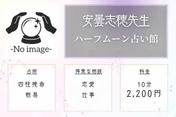 | ハーフムーン占い館 | 10分2,200円 | 恋愛、結婚、仕事など | 四柱推命、断易など | 横浜駅東口地上から30秒 |